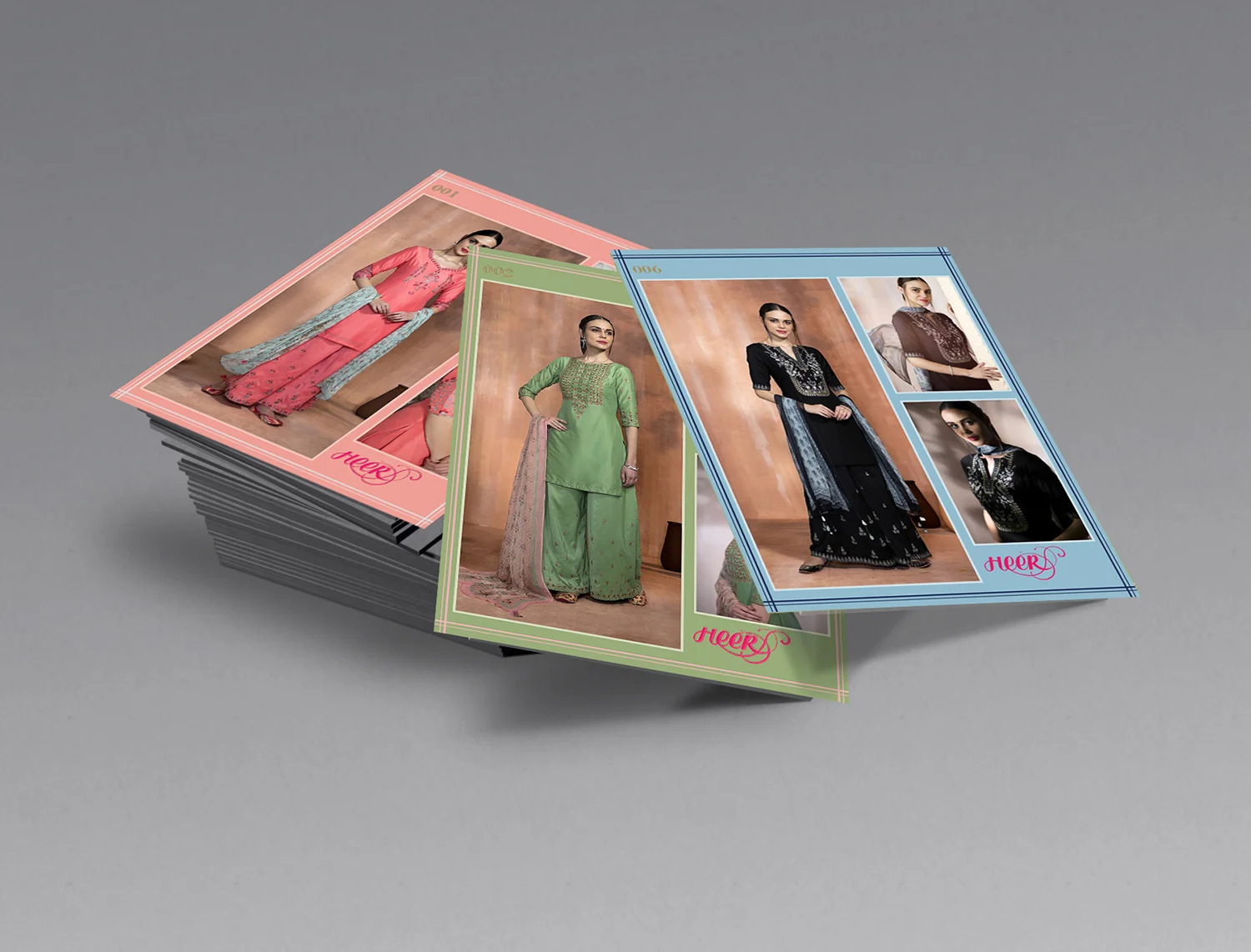 Three lookbooks and several postcards created for the collections of Kimora, an Indian ethnic fashion brand. It has five sub-brands that cater to the wholesale market. Heer and Kimora are two of these sub-brands. The art direction and set design accentuated the styles and colours of ethnic wear in richly traditional settings. Special illustrations inspired by their delicate embroidery and pattern were created to spotlight the images and set design.